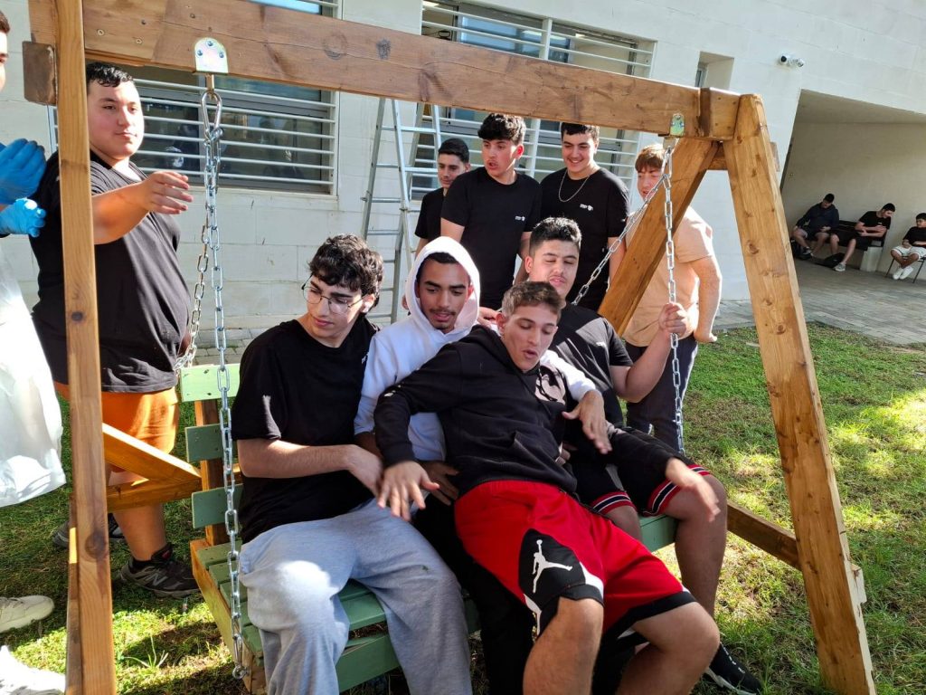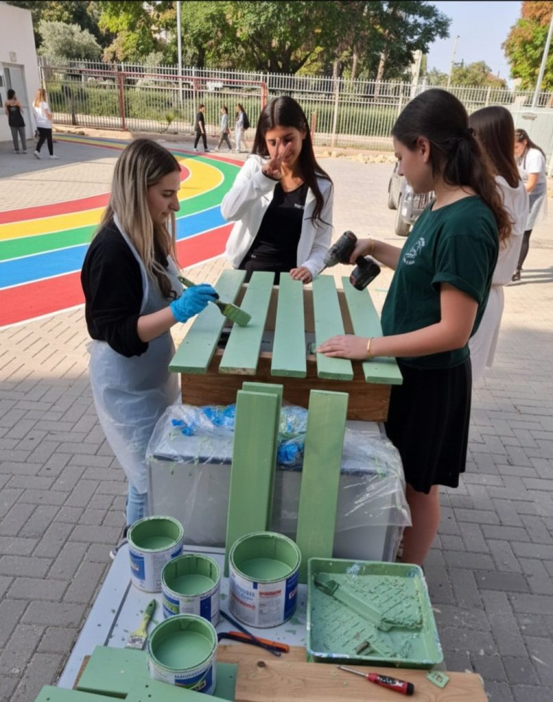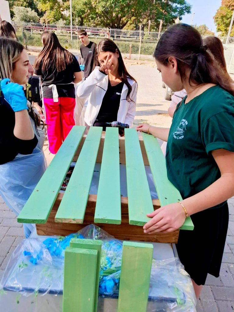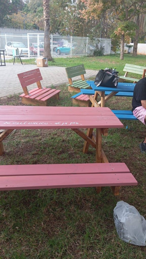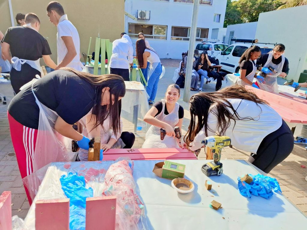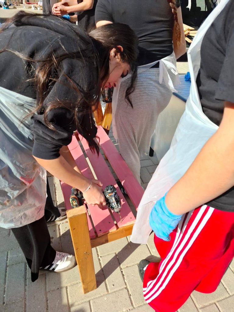 התלמידים עבדו יחד, בשיתוף פעולה וגיבוש מעורר השראה, ויצרו ריהוט פנאי חדש, עמיד וצבעוני